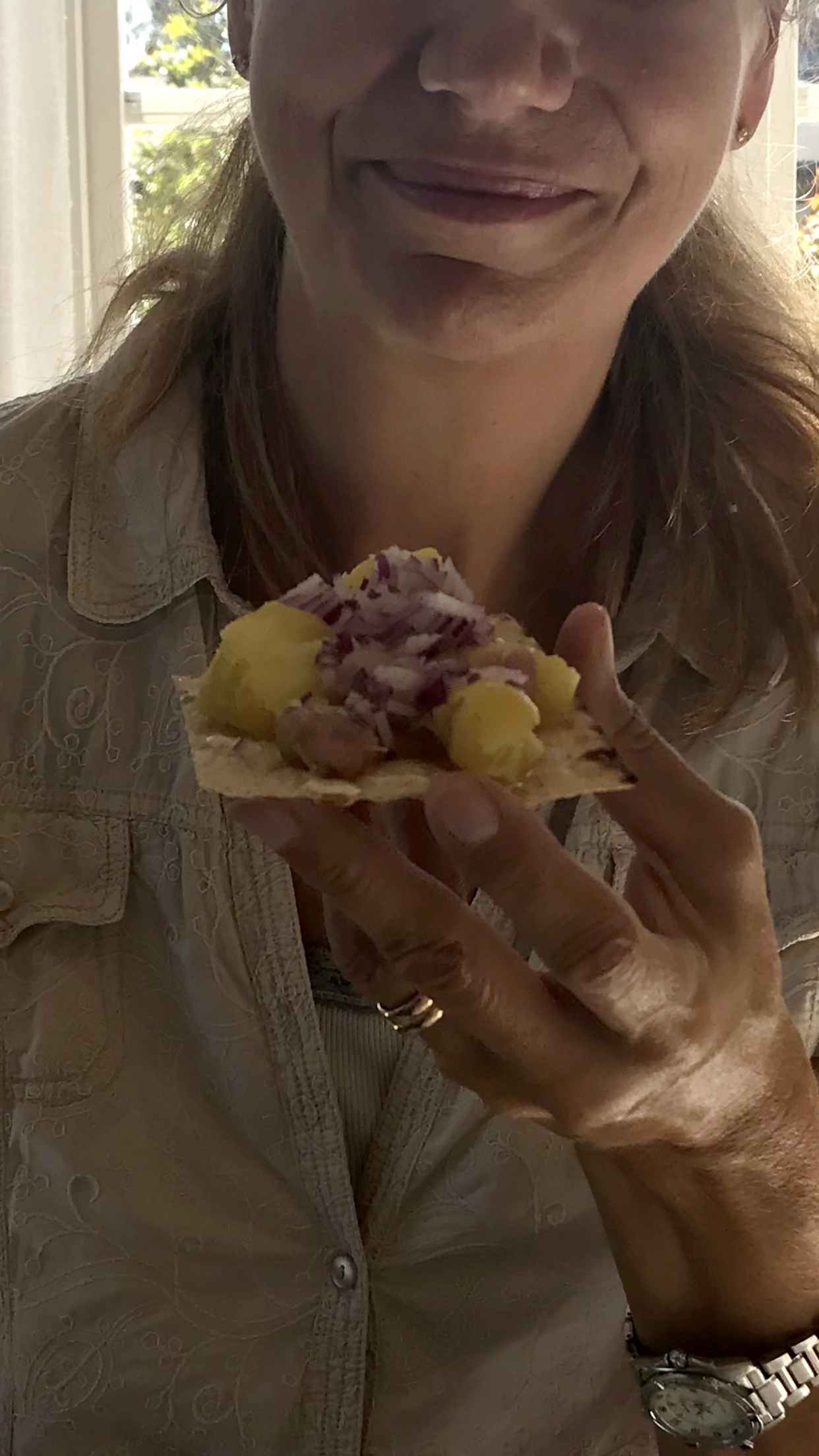 Alltså, så gott med kokt mandelpotatis, surströmming och massor med lök i en tunnbrödklämma. Min man som inte är lika förtjust i den illaluktande fisken åt endast en liten fisk, medan jag klämde i mig tre fetingar.