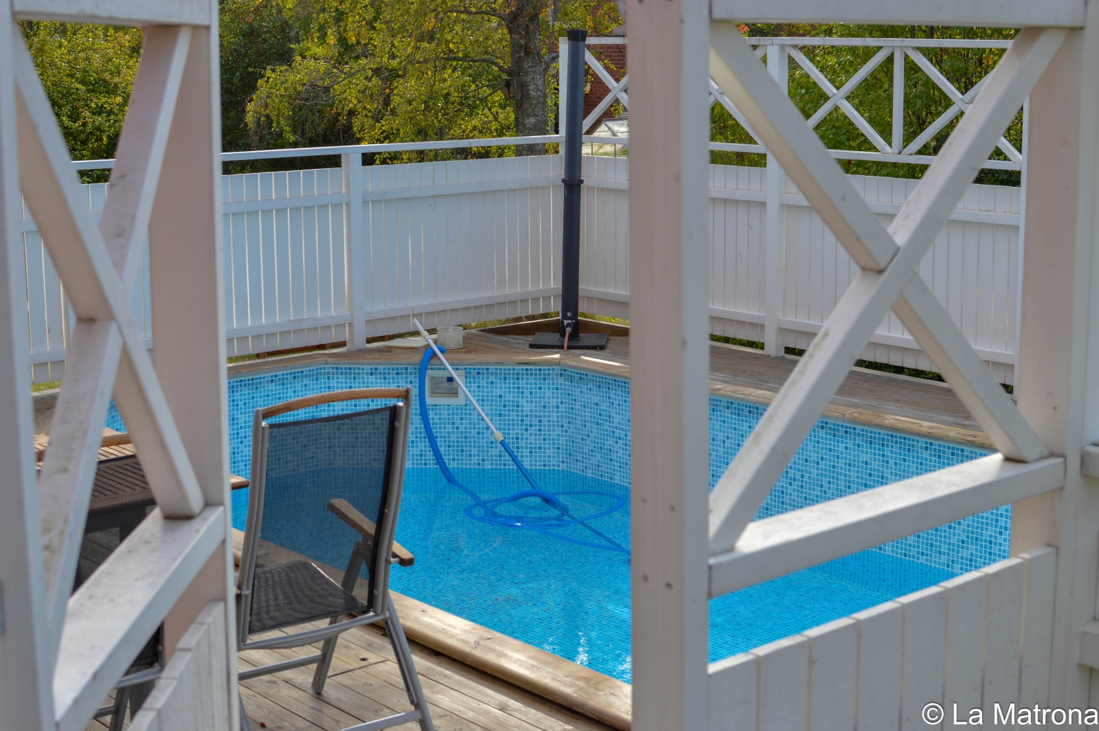 Det blev inte så mycket poolarbete i dag som jag trodde. Dagen har i stället gått åt att åka runt på en massa ärenden. Vi hann dock pumpa ur allt vatten som ska bort, men det var allt. I morgon ska pooltäcket bäras bort och plåtarna ska på. För att inte tala om pumpen som måste släpas in i källaren, den hatar jag för den är både otymplig och tung att bära. Bara jag tänker på det får jag ont i ryggen.