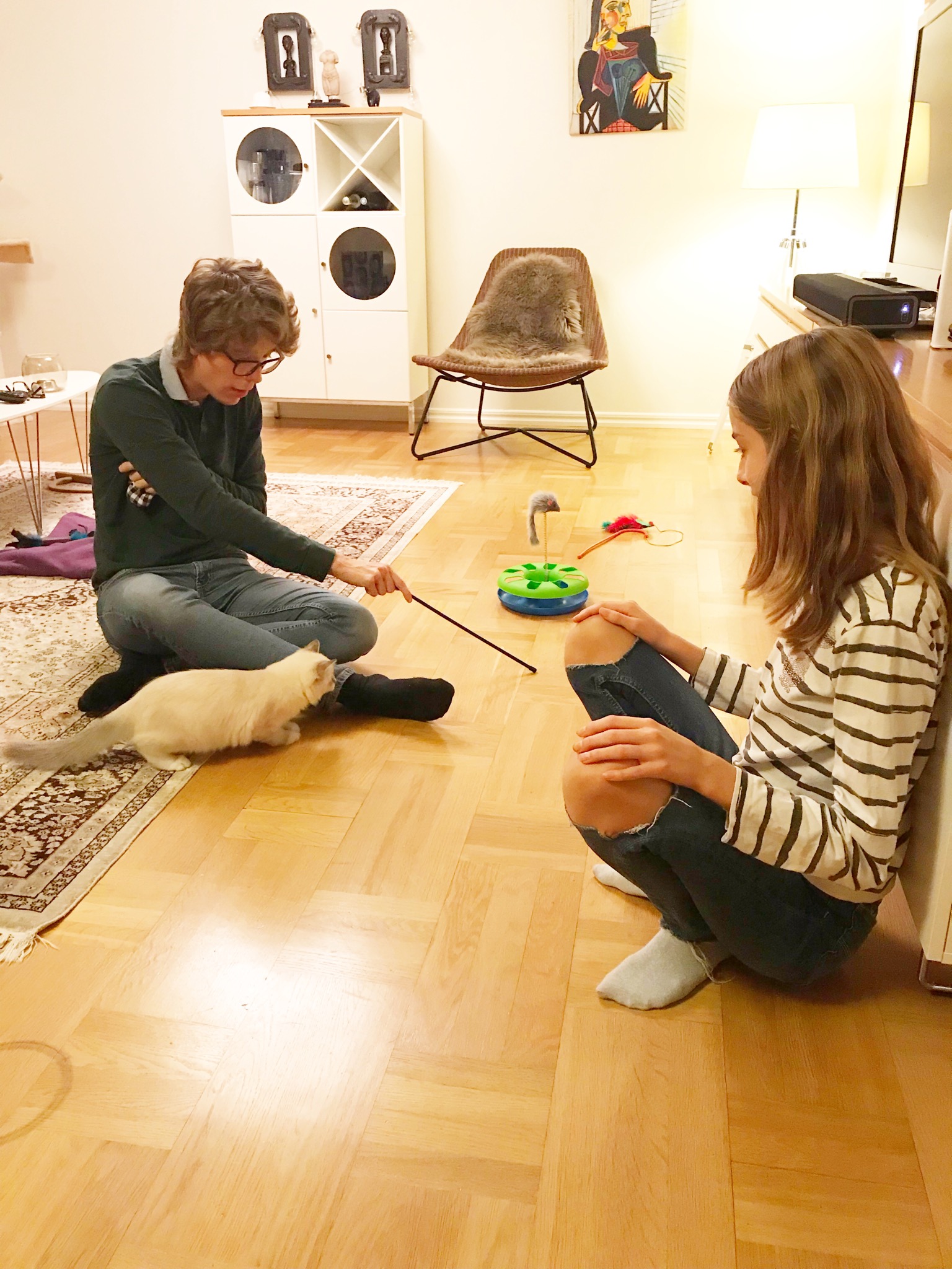 Omringad av flera beundrare har hon busat och charmat alla. Chelsie har säkert frågat tio gånger redan om inte vi kan skaffa en katt. Som i ett mantra har jag svarat om och om igen. -”Pappa och André är allergiska, tyvärr.”
