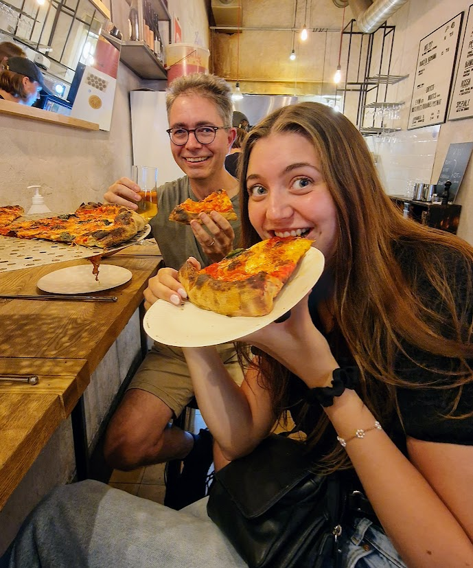 Mitt uppdrag blev att ta emot pizzorna och salta och peppra dem, en lagom arbetsuppgift med tanke på trängseln vid grillen. .