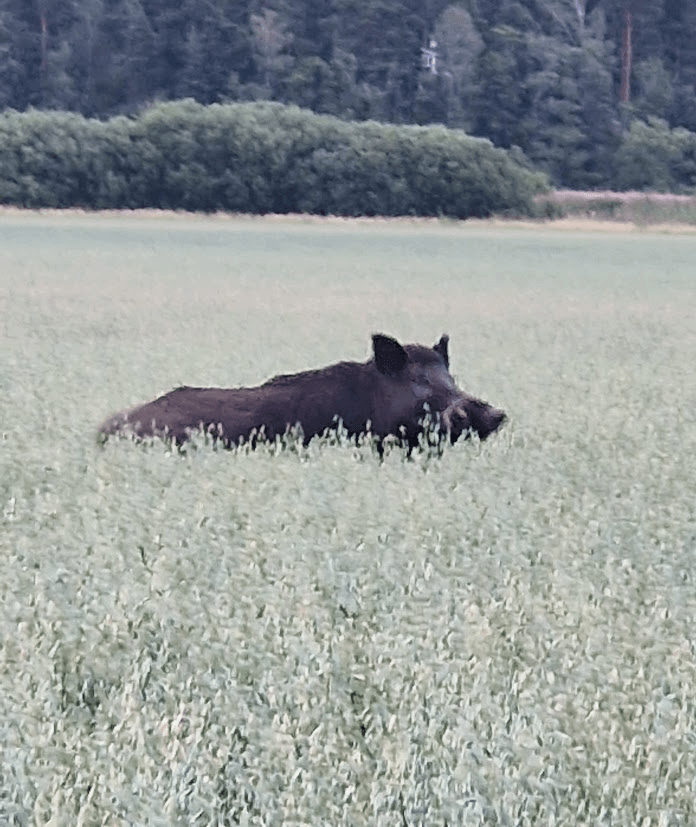 De övriga barnen har lite olika saker för sig just nu, Chelsie arbetar mycket nattpass på Max, André tågluffar i Europa och Sofie har en sommarkurs i ölbryggning. Själv tog jag ett kort på vår kringfarande granne, när hon/han laddar upp för att kasta sig över vår eller någon annans grannes trädgård.