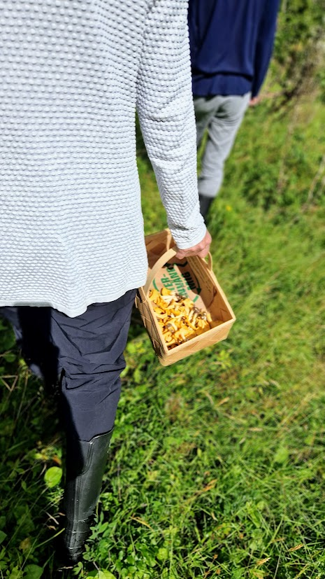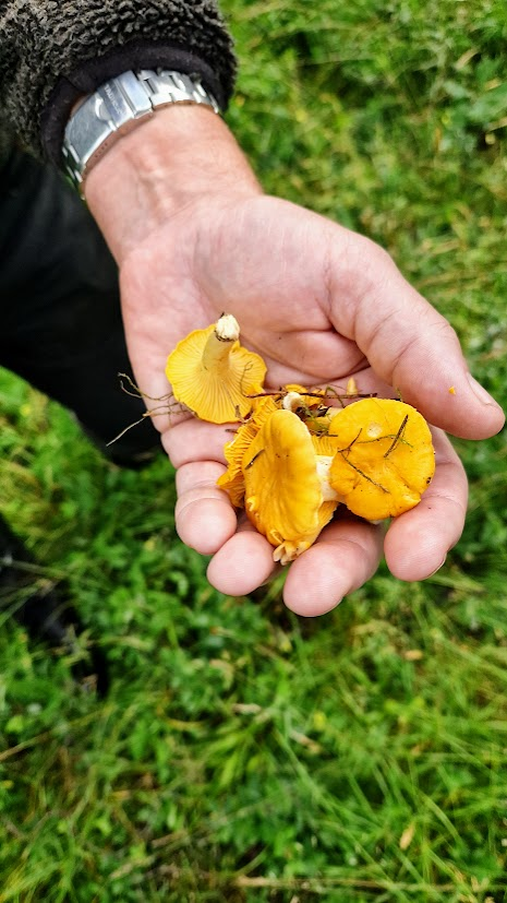 Vi har varit på jakt efter kantareller och hittade ett par torra sådana, de fräste jag upp med massor av smör och serverade dem som tillbehör till middagen .