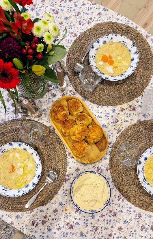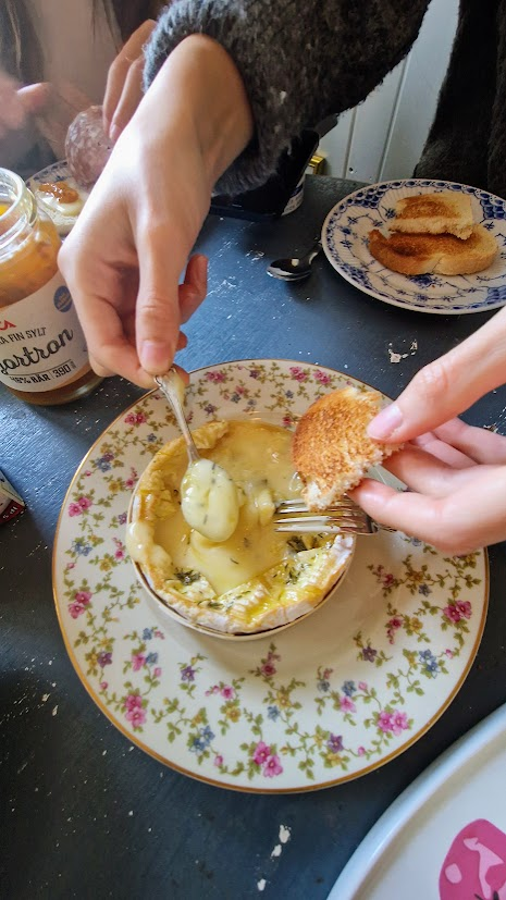 Tanken var att vi skulle airfrya camenberten efter middagen, men alla blev så proppmätta att vi åt det till frukost i stället.