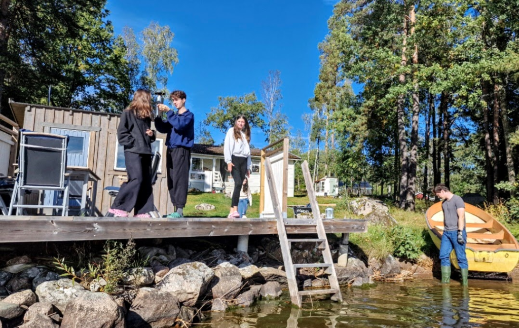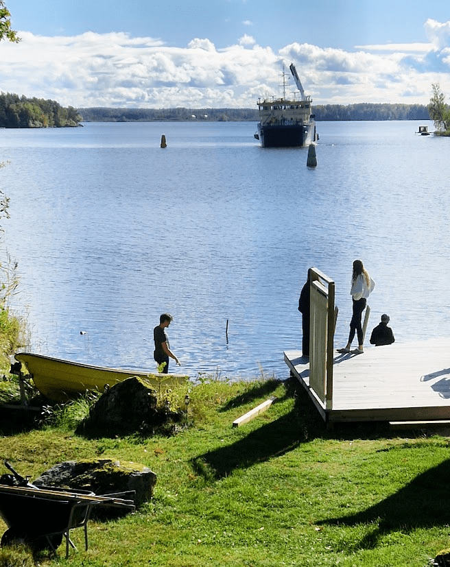 Barnen hjälpte till att dra upp båten för vinterförvaring, det gick på nolltid när alla hjälptes åt.