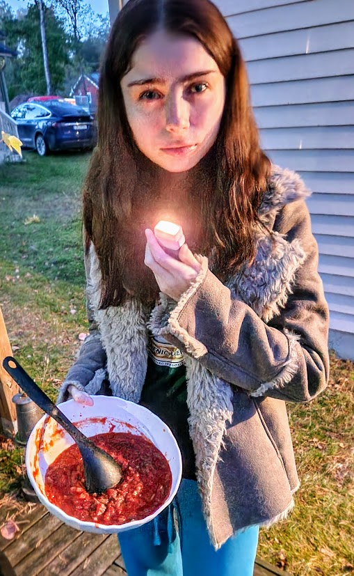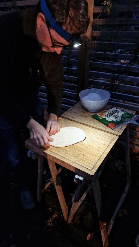 På kvällen gjorde vi pizza, alla hjälpte till runt grillen.