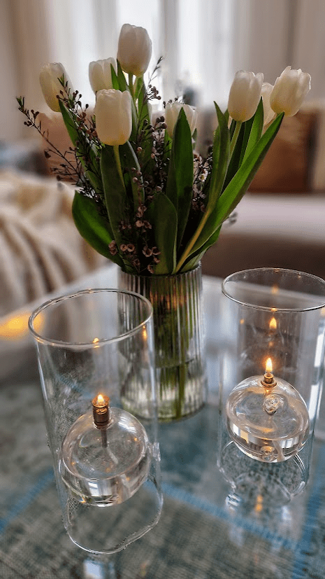 I dag hade jag mer än gärna legat kvar i sängvärmen. Inte för att jag vaknade trött, utan mer för att jag hörde hur regnet smattrade på rutan ovanför sovrumsfönstret. Det är sådana här dagar det vore skönt att lufsa runt i morgonrocken länge, och bara hålla sig inomhus. I lördags fick jag jättefina blombuketter, en riktig humörhöjare i allt dimmigt och regnigt väder.