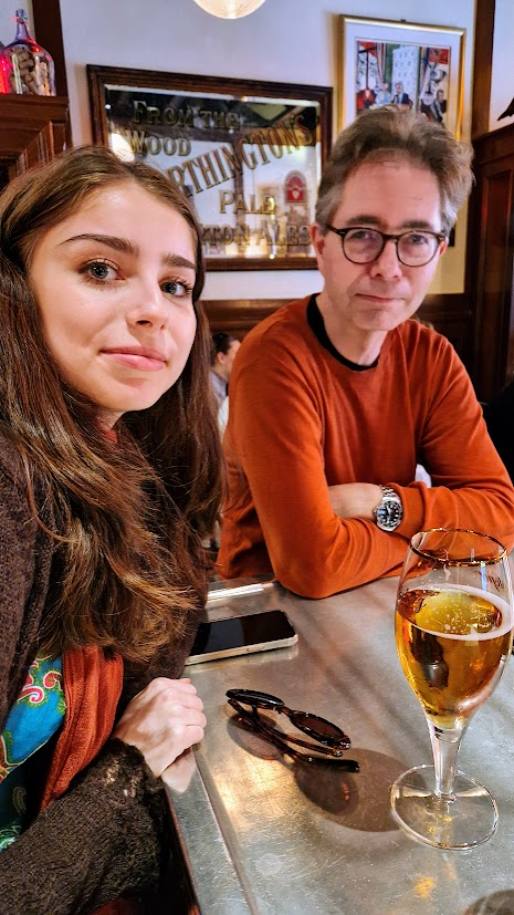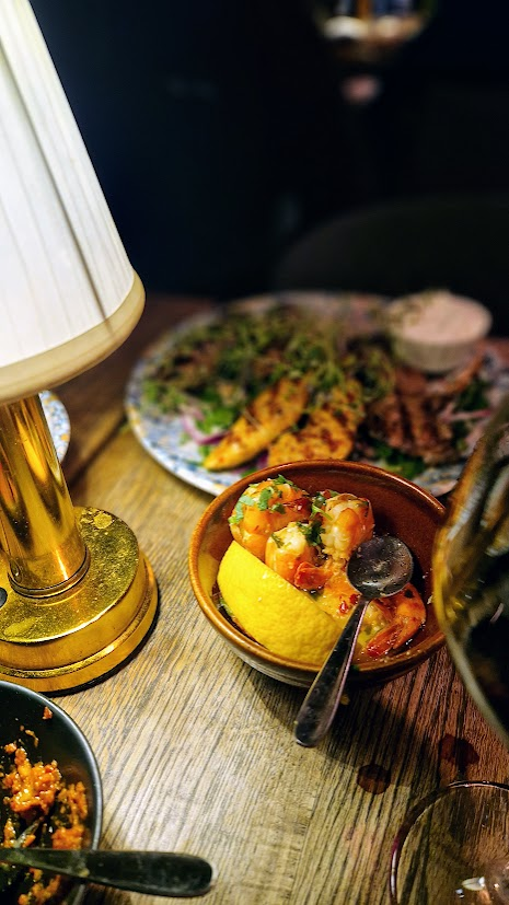 Det var som att kliva in i den gamla såpoperan Skål som gick på TV på 80-talet. Den där varma, familjära stämningen omslöt oss direkt när vi steg in, sorlet från gästerna blandades med bra musik, och hela rummet andades en trivsam, nästan nostalgisk atmosfär. Vi var helt lyriska, det var så himla mysigt! Vid baren satt stammisar som om de aldrig lämnat sina platser. Några spelade spel, skrockade och skålade, medan en ensam gammal dam bredvid oss satt och tog ett glas vin. Hon såg ut att njuta i fulla drag av eftermiddagen och sina kycklingvingar.