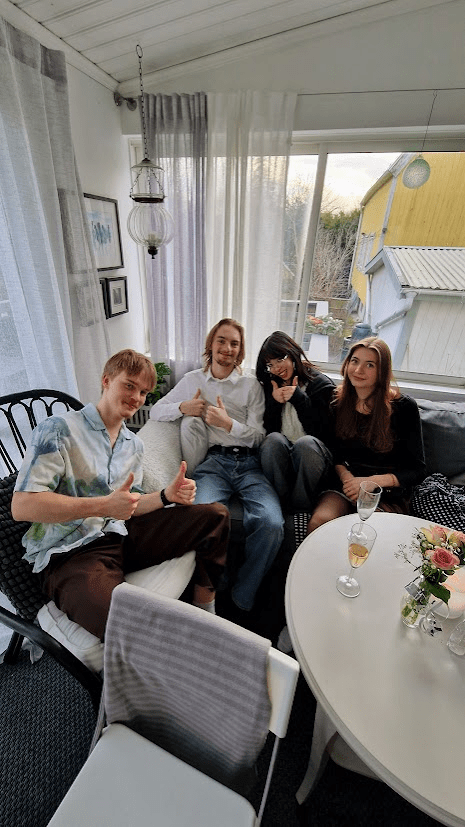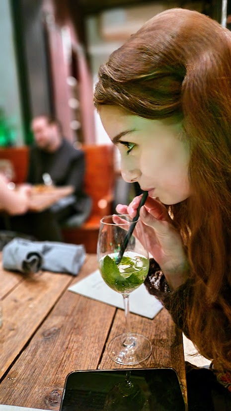 Jag och André hade satt oss så att vi hade perfekt utsikt över baren och Sofie, som med stor vana hällde upp öl. Plötsligt parkerade sig Patric bredvid oss, och vi satt tre i rad, som ett litet gäng förväntansfulla åskådare. Han ville inte heller missa när Sofie blandade ihop drinkar bakom bardisken. Vi måste ha sett ganska skojiga ut där vi satt, som en smått excentrisk familj som tagit över en del av baren. Familjen Pinsam, haha – men vi trivdes, och det var precis så det skulle vara.