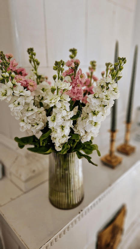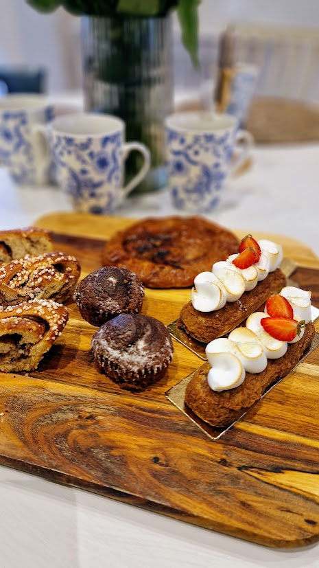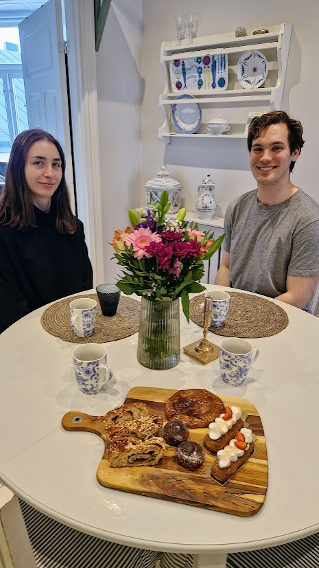 Jag blev glatt överaskad när vi kom hem från landet i dag, Corinne och Simon stod i köket och väntade på mig. De hade köpt blommor och bakelser från Åsö bageri.