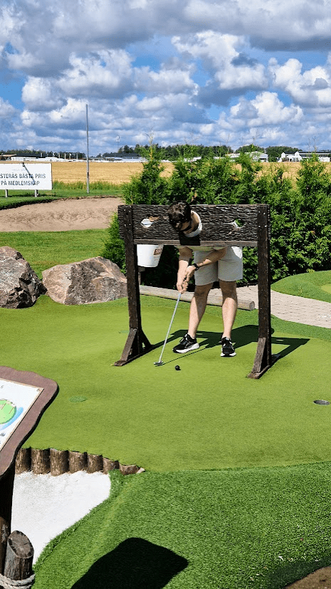 I går tog vi en liten roadtrip till Västerås, metropolen där drömmar blir verklighet, eller åtminstone där man kan köpa väggfärg utan att stå i kö. Jag slog till på fin kulör till sovrummet, eftersom jag är mitt uppe i ett målarprojekt. Innan vi styrde kosan mot second hand-affären hann vi med ett parti minigolf. Där glänste vi inte direkt som Tiger Woods, men vi hade kul och slog bort tillräckligt många bollar i vattnet för att det skulle räknas som både sport och underhållning.