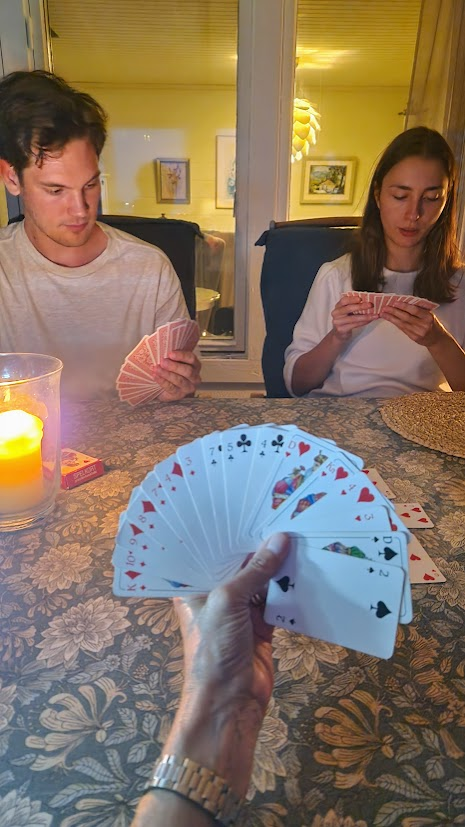 Två kvällar i rad har vi förvandlats till rena rama korthajar, tänk Las Vegas, fast med mygg, rödvin och småprat. Det har varit så mysigt när mörkret långsamt smugit sig på och att man fortfarande kan sitta ute i lätt klädsel och inbilla sig att sommaren aldrig kommer ta slut.