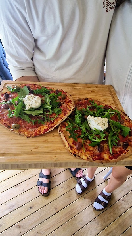 På kvällen slog de till med pizzakväll, men inte vilken pizzakväll som helst. Nej då. Det här var den rebelliska kusinen till den traditionella pizzan. Istället för deg använde de libabröd som botten, och tomatsås? Glöm det. Här var det tomatpuré rätt ur tuben som gällde, men det funkade oväntat bra. Resultatet blev förvånansvärt gott, som en slags semesterflirt mellan Italien och Mellanöstern med ett stänk av kreativ, ehh… lathet?