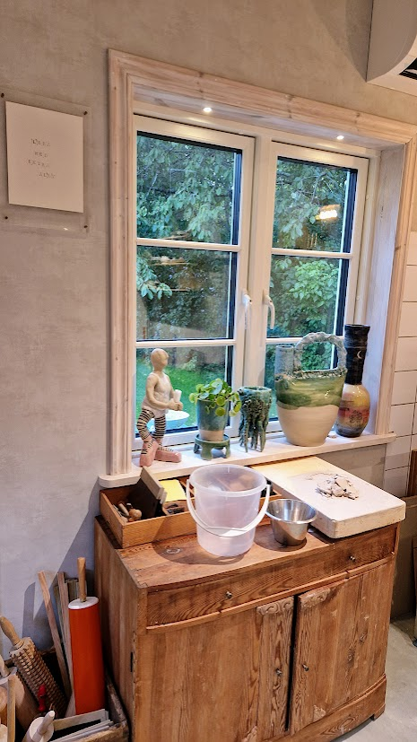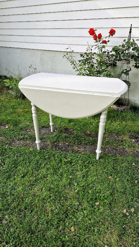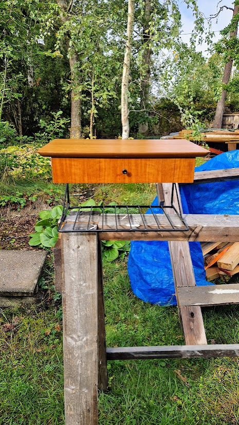 I morse åkte jag och Patric ut till landet. Jag fortsatte måla bordet och hyllan som André ska få. Han har valt en varm beige ton, och jag tror att den kommer att passa alldeles utmärkt hemma hos honom.