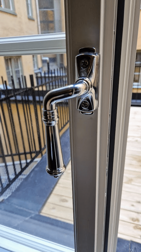Överallt fanns vackra detaljer: de blänkande handtagen på terrassdörrarna, de unikt utformade fönsternischerna i marmor och de nya men tidstypiskt designade eluttagen.