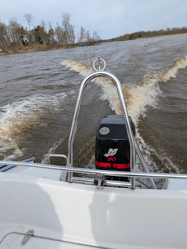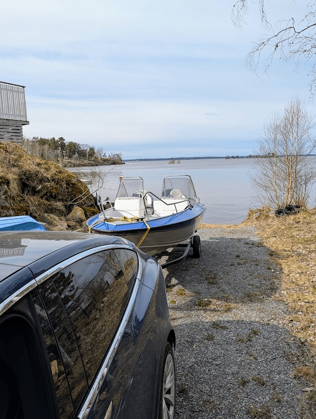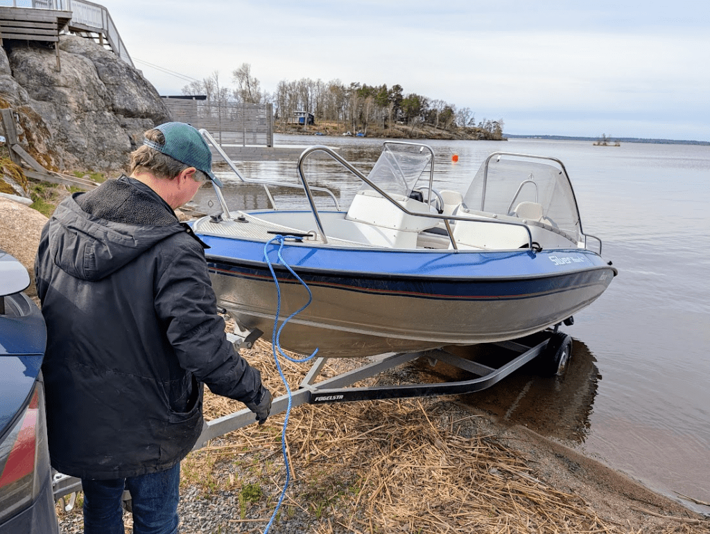 Jag och Patric sjösatte också båten, och det gick över förväntan. Trots hårda vindar och att båten är helt ny för oss lyckades vi utan problem köra den hela vägen till vår brygga.